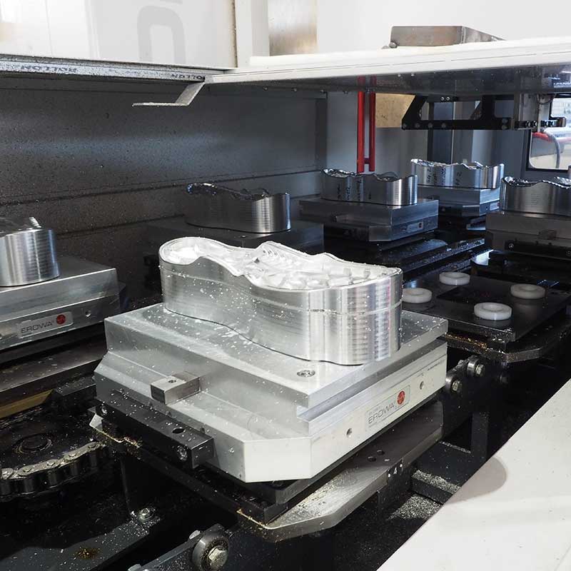 With the help of various technologies at our disposal we can create a physical 3D model ( Maquette) to be delivered to the customer before making the actual mould. This allows our clients to touch the quality of the result and select different stylistic choices to a further integration in the mould. We can make rigid or soft prototypes that can be painted in the colors of the shoe for a realistic result.